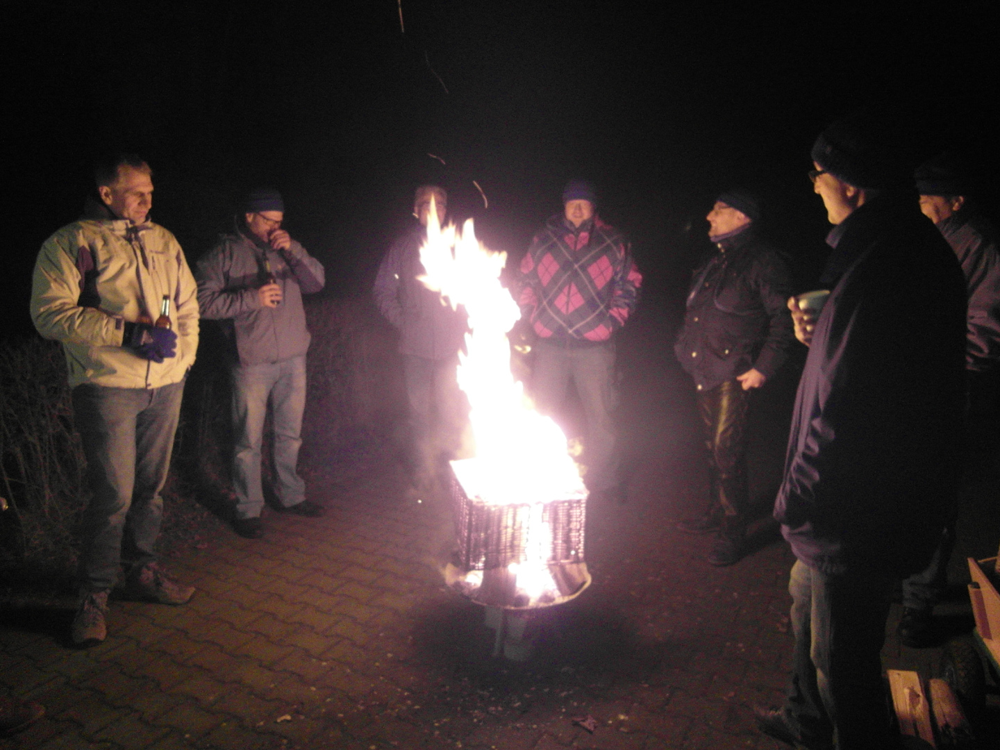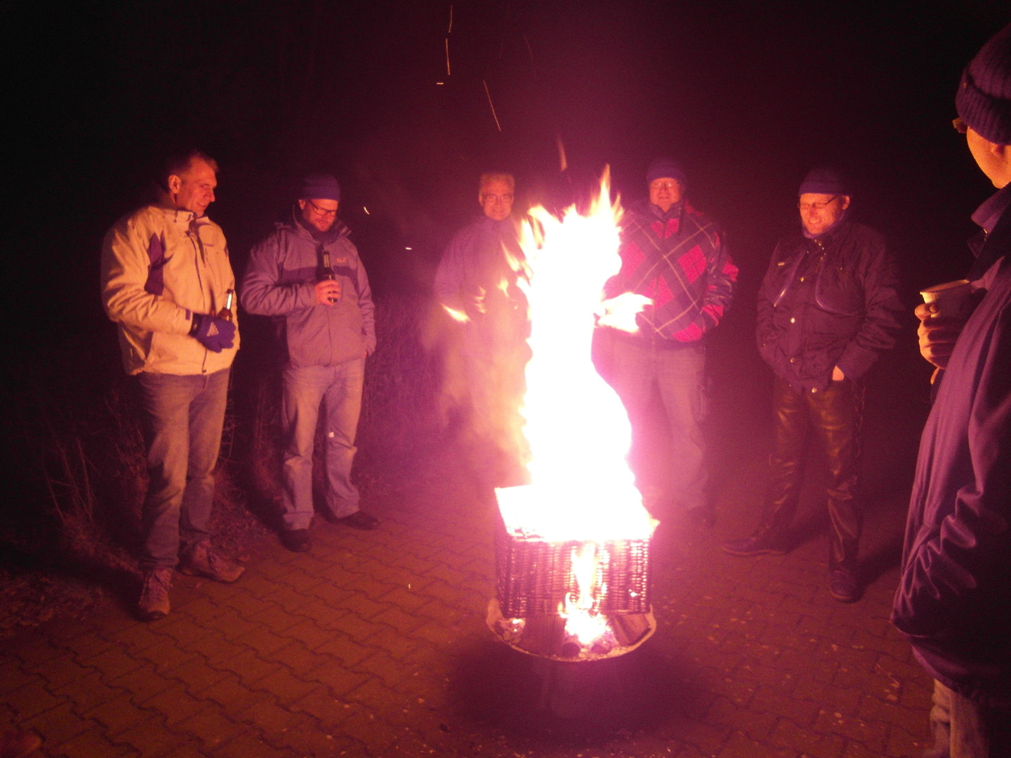 Nachdem die letzten „Kleinen“ gegen Mitternacht sich in ihre Schlafsäcke verkrochen hatten, trafen sich die Männer nochmals am Feuer und ließen den Tag Revue passieren.